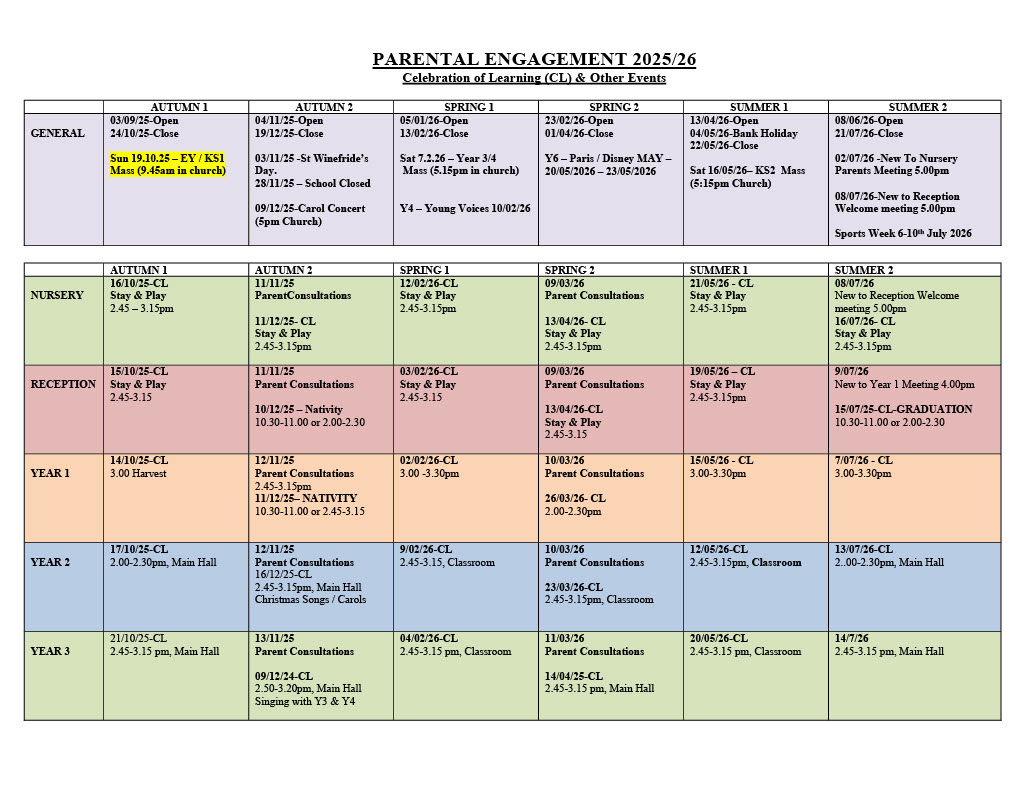 We are delighted to share with you our Parental Engagement Calendar for the 2025–2026 school year.
