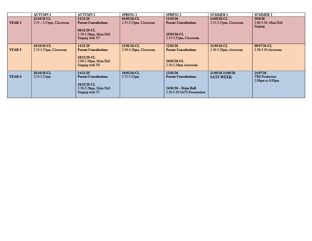 We encourage you to pop the dates in your diary and hopefully join us for as many special moments as possible in your child’s school journey.